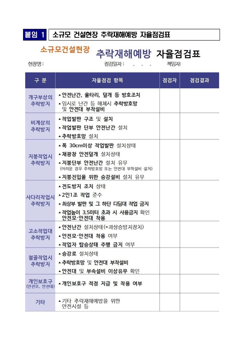 고용노동부(장관 김영훈)는 산업현장에서 발생하는 산재에 대한 경각심을 높여 중대재해를 효과적으로 줄이기 위해 시기별 사고 예방을 위한 ‘집중점검주간’을 매월 2회 운영한다고 밝혔다.「집중점검주간」은 산업재해 발생 특성과 시기적 요인 등을 반영한 테마를 선정하여 1주일간 전국적으로 시행한다. * 최근 떨어짐, 부딪힘, 끼임