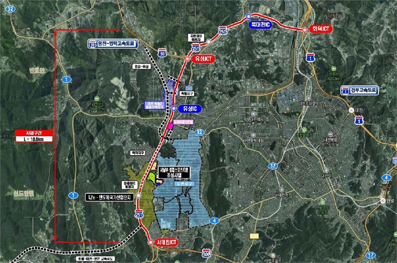 대전의 숙원 사업인‘호남고속도로지선 확장 사업’이 31일 기획재정부 제10차 재정사업평가위원회 예비타당성조사 심의 결과 최종 통과했다. 이번 사업은 총사업비 3,522억 원 규모로 호남고속도로지선 서대전분기점~회덕분기점 구간(총 18.6㎞)이 4차로에서 6차로로 확장하는 사업이며 사업기간은 약 8년으로 계획하고 있다.