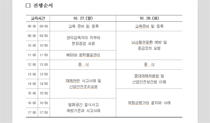 대전시, 관리감독자 대상 산업안전보건교육 진행