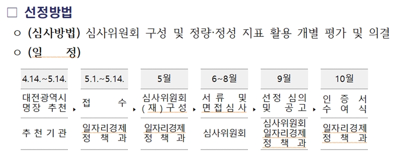 ㅇ (기 능) 선정 절차에 따른 심사(1, 2차) 및 최종 심사(의결)