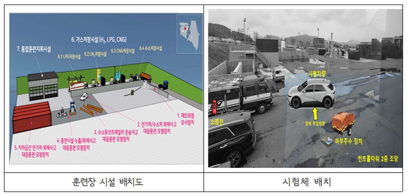 센터 내에는 △통합 훈련 지휘 시설 △제트화염 분사 장치 △전기차·수소차 화재 대응 훈련 모형 장치 △수소 튜브 트레일러 운송 사고 대응 훈련 모형 장치 △충전시설 누출·화재 대응 훈련 모형 장치 △지하공간 전기차 화재 대응 훈련 모형 장치 △수소·LPG 등 가스 저장 시설 등을 설치했다.
