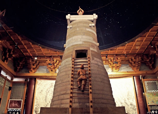 ‘동양 최고(最古)의 천문대’ 첨성대는 알면 알수록 과학적인 석축물이다. 위는 둥글고 아래는 네모진 첨성대의 모양은 하늘과 땅을 형상화했다. 첨성대를 만든 365개 내외의 돌은 1년의 날수를 상징하고, 27단의 돌단은 첨성대를 지은 27대 선덕여왕을, 꼭대기 정자석까지 합치면 29단과 30단이 되는 것은 음력 한 달의 날수를 상징한다. 관측자가 드나들었을 것으로 추측되는 가운데 창문을 기준으로 위쪽 12단과 아래쪽 12단은 1년 12달, 24절기를 표시한다. 놀라운 과학적 사실이기도 하며, 첨성대가 하늘의 움직임을 관측하는 곳이었다는 사실을 온 몸으로 말해주는 증거들이기도 하다. 첨성대 앞에서 돌 세어보기, 공부해간 사실을 직접 확인해보는 너무나도 적절한 방법이다.