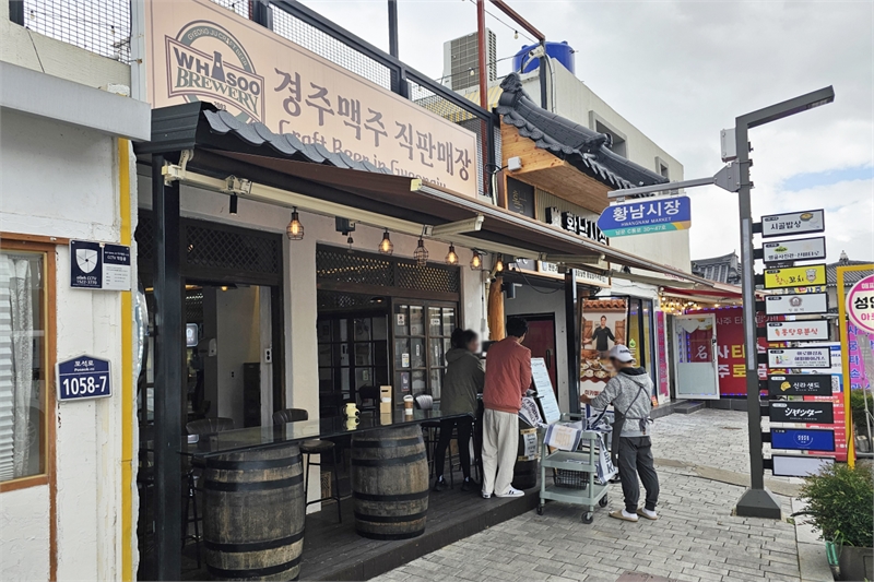 1세대 수제 맥주 브루어리인 화수 브루어리에서 운영하는 맥주 시음 및 테이크아웃 전문 매장이다. 화수 브루어리는 경주에서만 만날 수 있는 로컬 맥주를 선보인다. 바나나향과 열대꽃인 클로브향이 가미되어 바이젠 특유의 깊은 향을 느낄 수 있는 ‘경주맥주’가 가장 먼저 출시되었다. 이후 경주의 문화유산에서 영감을 받은 조합으로 주조한 다양한 수제 맥주 라인업을 차례로 내놓았다. 신라의 금관처럼 황금빛을 띠는 가벼운 바디감의 ‘금관 맥주’, 곡물의 고소함과 메이플 시럽의 달콤함을 느낄 수 있는 ‘황리단길 도펠북’, 얼굴무늬 수막새의 고혹적인 미소를 닮은 흑맥주 ‘신라의 미소’, 신라시대 놀이기구인 주령구에서 착안한 ‘주령구 IPA’ 등 스토리텔링이 있는 맥주 라인업을 만난다. 황리단길 내 황남시장에 문을 연 직판매장에서는 맥주 무료 시음을 해볼 수 있고 구매도 가능하다. 테이블과 좌석이 마련되어 있어 간단하게 맥주를 한잔 마시고 갈 수도 있다.