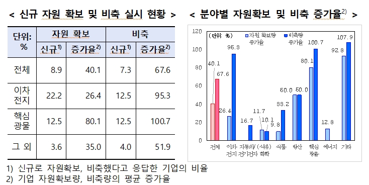 ㅇ 특히 이차전지, 핵심광물 등 분야에서 자원확보 및 비축량 증가 효과가 상대적으로 높게 나타남