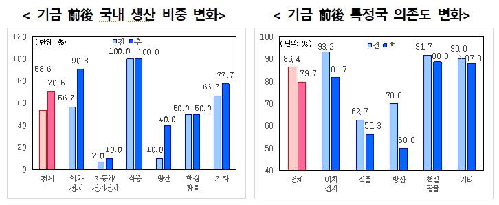 □ 국내생산 비중은 평균 16.9%p 증가한 것으로 조사