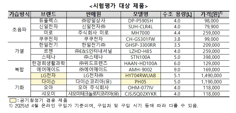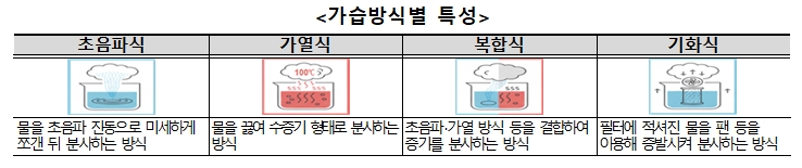 * 초음파식(4개), 가열식(3개), 복합식(3개), 기화식(3개)