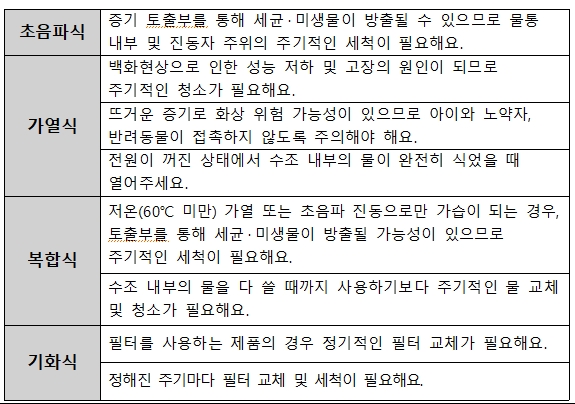 ☐ 모든 제품, 주기적인 세척 필요해(세부내용, 16페이지)