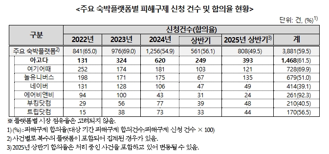 ‘주요 숙박플랫폼 관련 피해구제 신청 현황 분석’ 결과
