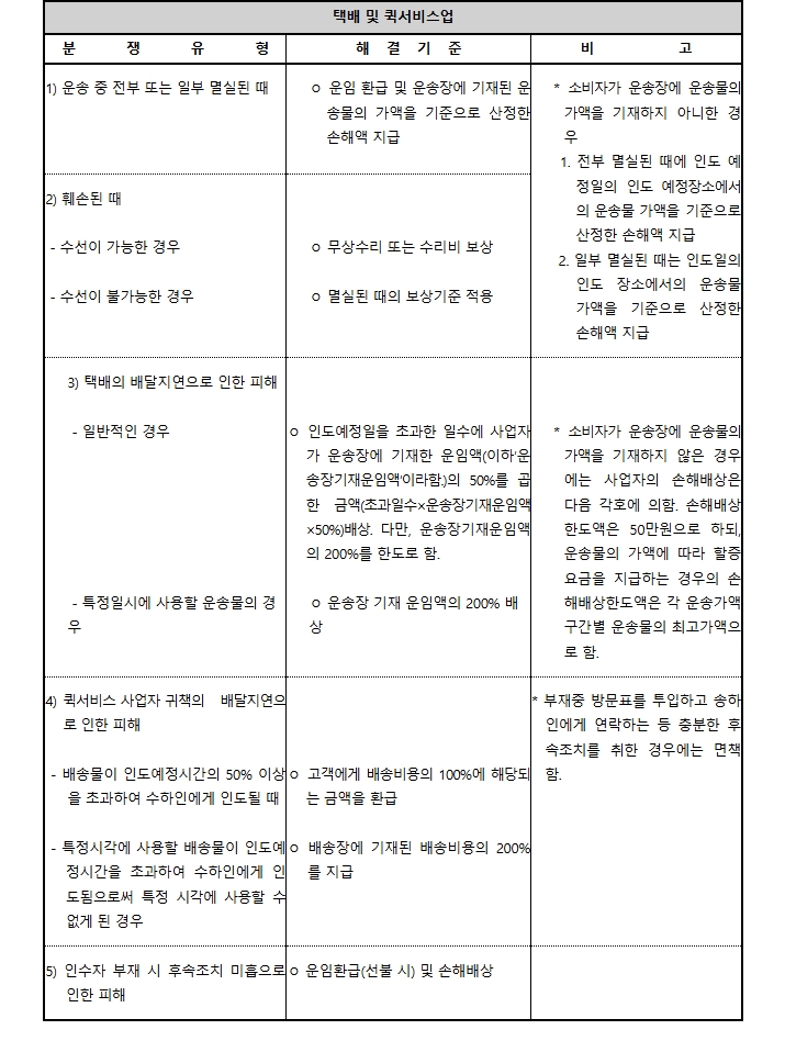 □ 소비자원·공정위, 택배 사업자에게 소비자피해 예방을 위한 개선 권고