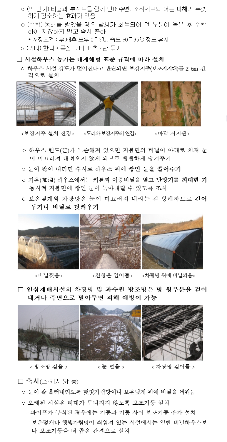 겨울철 재해 대비 농작물 및 시설물 관리요령