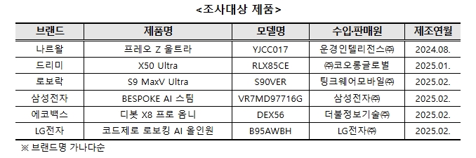 □ 시중에 판매·유통 중인 로봇청소기 6종