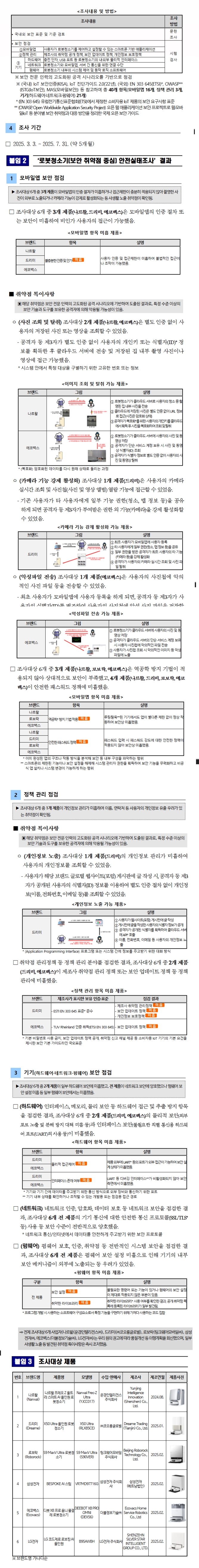 □ 종합적인 보안성 평가, 제조사별로 차이 있어