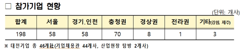 ㅇ (기업채용관) 전국 198개社(D-유니콘존, 대전시 우수기업관, 청년일자리 강소기업관 등