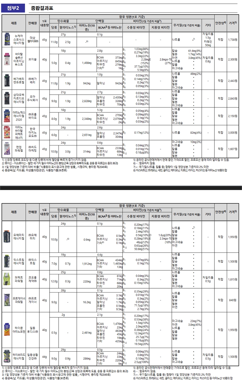 * 바이탈솔루션 아르지닌 부스트(브이솔), 베가베리 엔듀로젤(㈜베가베리), 익스트림 에너지젤 (㈜익스트림)