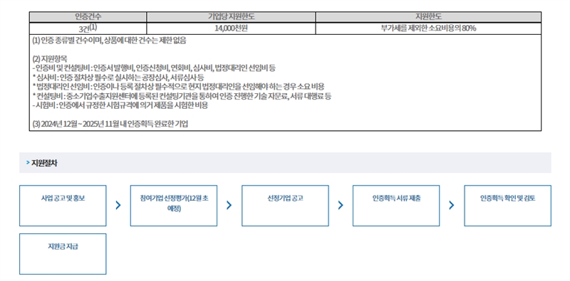 - 기업당 최대 3건 인증 지원(지원한도 내)