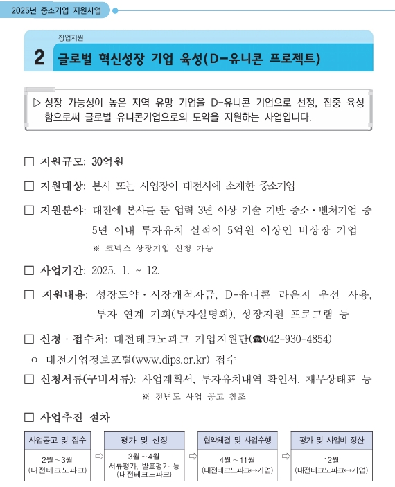 복지 > 국가지원 글로벌 혁신성장 기업 육성 D-유니콘 프로젝트 월드타임스 승인 2025.11.22 22:23 0 글로벌 혁신성장 기업 육성 D-유니콘 프로젝트 ※ 이 기사는 대전일자리경제진흥원에서 제공한 보도자료를 바탕으로 작성되었습니다. 0 0 월드타임스 월드타임스 sun8235050@naver.com 월드타임스의 기사 더보기 저작권자 ⓒ 월드타임스, 무단 전재 및 재배포 금지