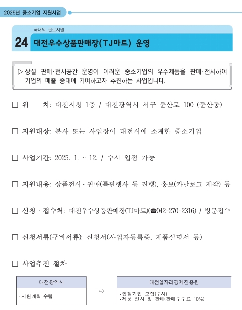 복지 > 국가지원 대전우수상품판매전시장 (TJ마트) 운영 월드타임스 승인 2025.11.23 10:30 0 대전우수상품판매전시장 (TJ마트) 운영 ※ 이 기사는 대전일자리경제진흥원에서 제공한 보도자료를 바탕으로 작성되었습니다. 0 0 월드타임스 월드타임스 sun8235050@naver.com 월드타임스의 기사 더보기 저작권자 ⓒ 월드타임스, 무단 전재 및 재배포 금지