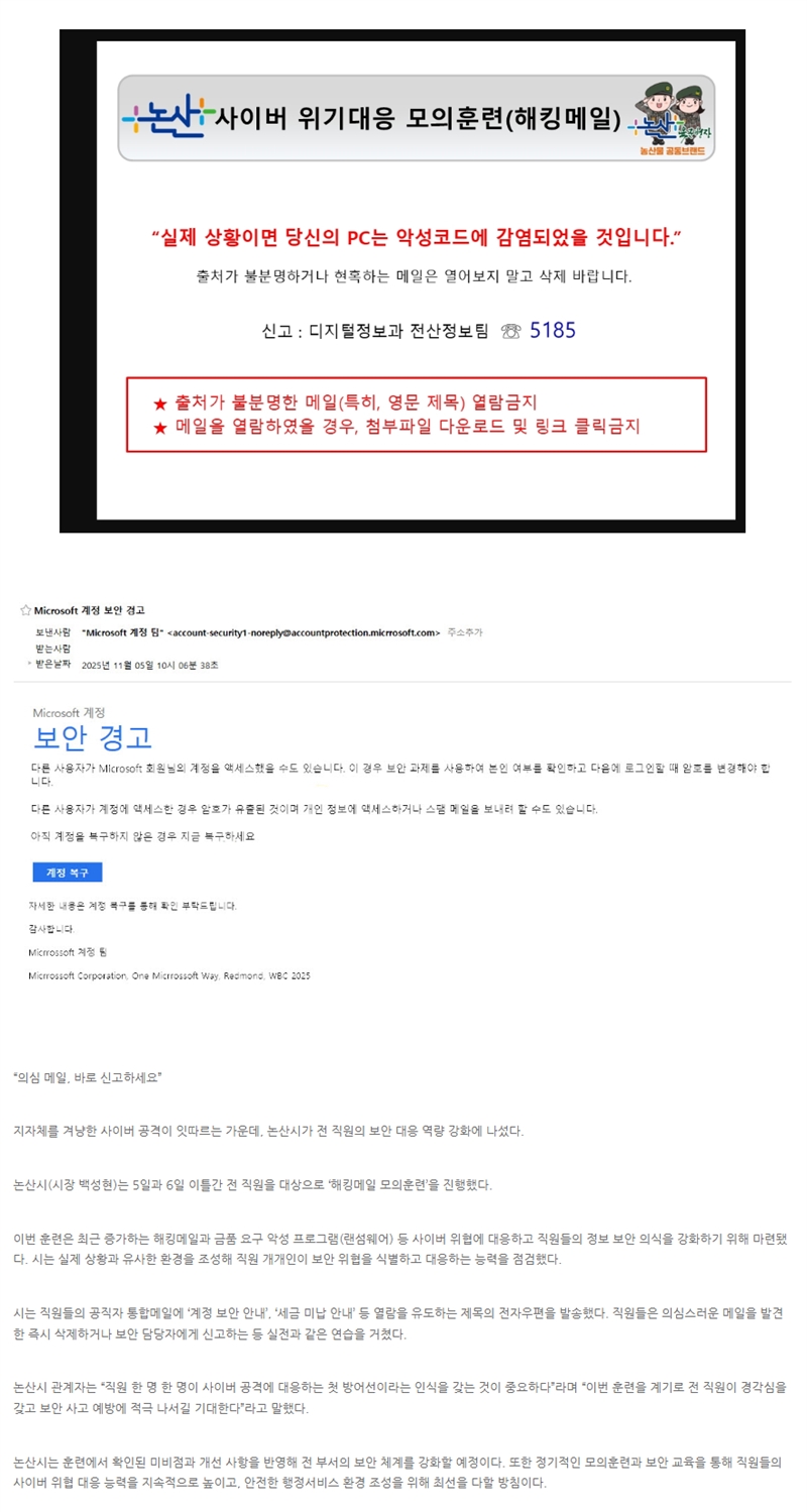 복지 > 직업교육 논산시, 전 직원 대상 ‘해킹메일 모의훈련’ 실시 월드타임스 승인 2025.11.25 23:13 0 논산시, 전 직원 대상 ‘해킹메일 모의훈련’ 실시 ※ 이 기사는 논산시청에서 제공한 보도자료를 바탕으로 작성되었습니다. 0 0 월드타임스 월드타임스 sun8235050@naver.com 월드타임스의 기사 더보기 저작권자 ⓒ 월드타임스, 무단 전재 및 재배포 금지