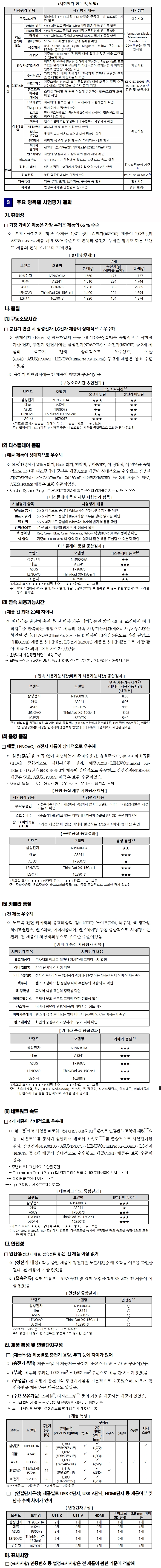 ‘노트북 품질비교 시험평가’ 결과