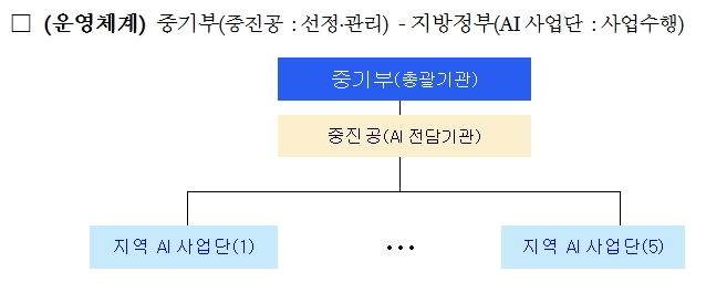 □ (지원규모) 국비 350억원(5개 지역 AI 사업단 × 평균 70억원) × 2년간
