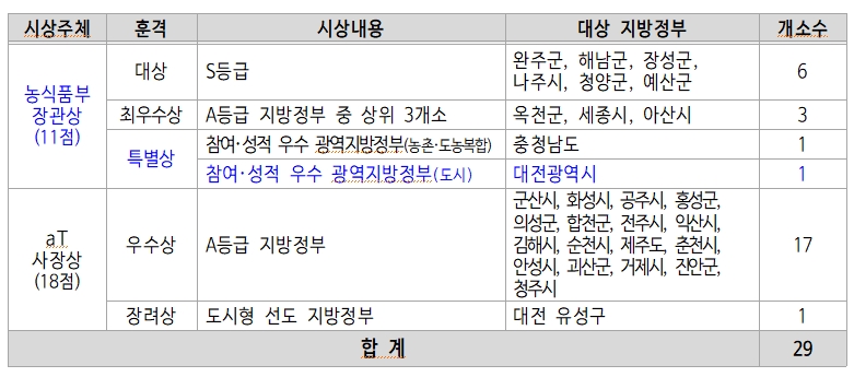 - 한국농수산식품유통공사 사장상 18점(우수상-장려상)