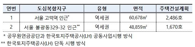 ㅇ 그중 불광동329-32·고덕역 지구는 지난달 28일 고시된 곳으로, 총 4,156호가 공급된다. 고덕역 지구는 대지면적 60,678㎡에 2,486호, 불광동329-32 지구는 대지면적 48,859㎡에 1,670호의 주택이 건설될 예정이다.