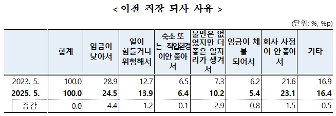 ○ 불만은 없었지만 더 좋은 일자리가 생겨서는 전기 대비 2.9%p 상승하였고, 임금이 낮아서는 4.4%p 하락함