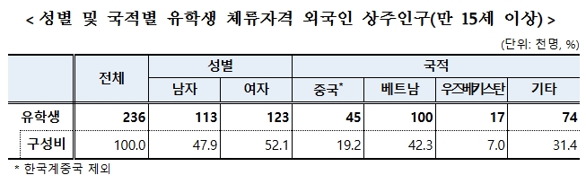 - 유학생(2만 3천 명), 비전문취업(1만 8천 명) 등에서 증가