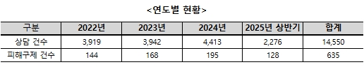 * 피해구제 신청 건수(치과 전체): ’22년 144건 → ’23년 168건 → ’24년 195건 → ’25년 상반기 128건