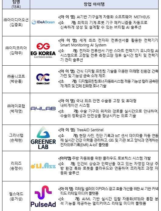 - 왕중왕(대상) 등 수상팀 시상하고, 창업 지원사업 우대 등 후속 지원 예정