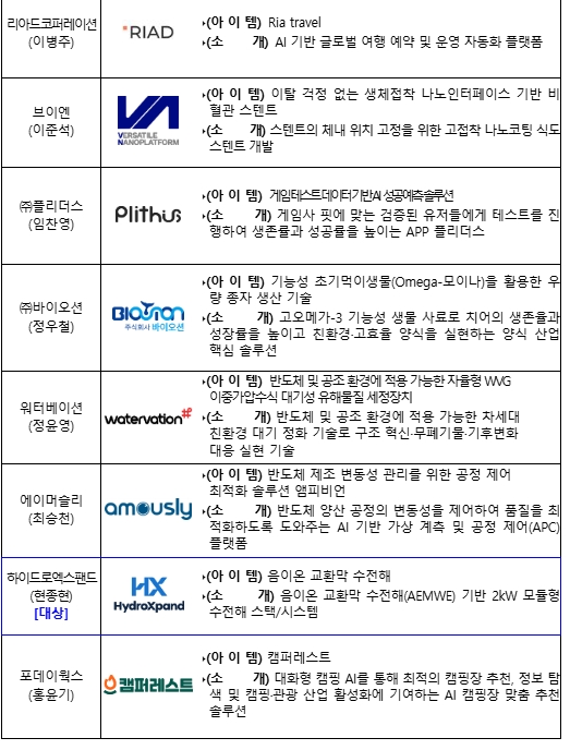 - 역대 최대 규모 7,377팀이 출전한 「도전! K-스타트업 2025」에서 창업리그 대상에 하이드로엑스팬드, 예비창업리그 대상에 XMUT 등 20팀 선정