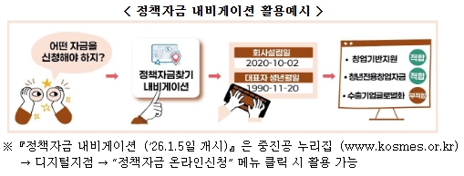 먼저, 기업의 정책자금 신청부담을 완화하기 위해 ‘정책자금 내비게이션’을 신규 도입한다. 정책자금 내비게이션은 기업이 자금 신청 시, 업력·폐업여부·수출실적·자금용도 등 기초정보를 입력하면 내비게이터가 해당 정보를 토대로 맞춤형 적합자금을 추천해주는 시스템으로, 어떤 자금이 기업에게 적합한지 알려주는 길잡이 역할을 할 것으로 기대된다.