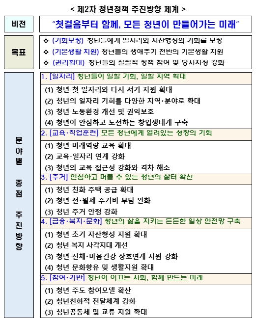 □ 이에 정부는 제2차 기본계획의 비전을 “첫걸음부터 함께, 모든 청년이 만들어가는 미래”로 설정했다.