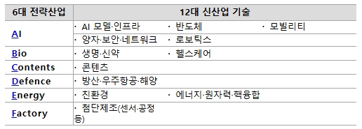 「초격차 프로젝트」를 통해 ‘23년부터 시스템반도체 등 10대 신산업 분야의 딥테크 스타트업을 육성해 왔다. 내년부터는 새정부의 6대 전략 산업 및 초혁신 경제 15대 프로젝트 등을 반영하고, 지원 분야를 ‘6대 전략산업-12대 신산업’으로 개편하여 운영할 계획이다.