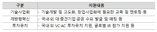- 선정 스타트업에 기술사업화·R&D 자금, 개방형 혁신, 투자유치 등 지원