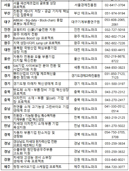 지역 프로젝트 분야 주관기관 연락처