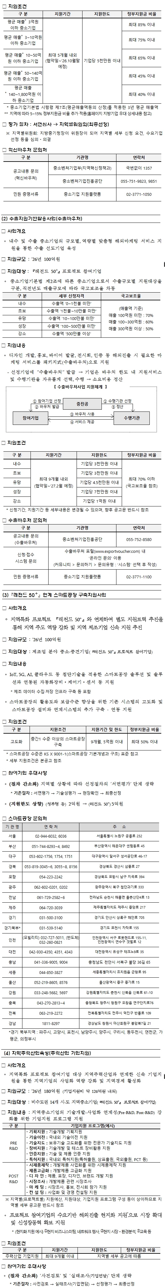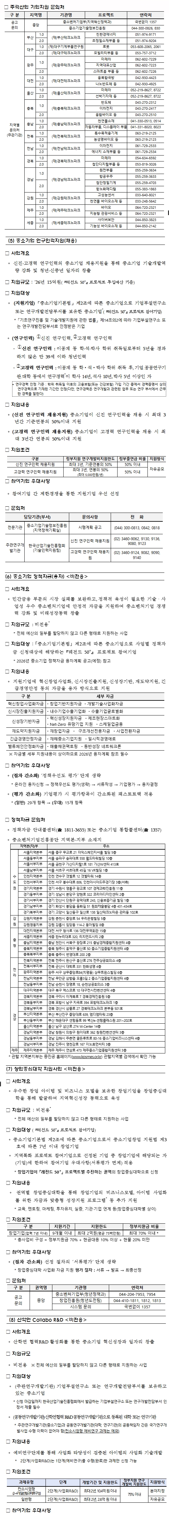2026년도에도 전년과 동일하게 전국 17개 시·도에서 추천하여 선정한 1,840개 기업의 경쟁력 강화를 위해 다양한 사업을 지원한다.