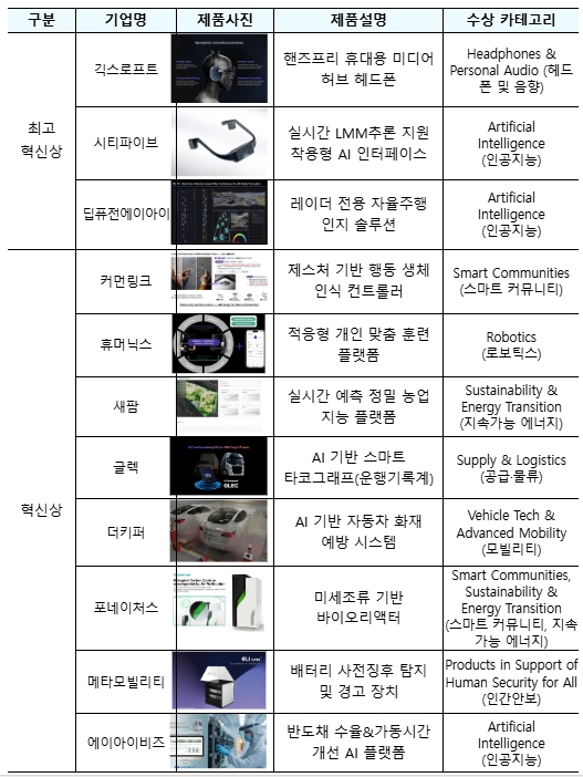 * AI, 로봇, 디지털헬스 등 36개 분야에서 기술, 혁신성, 디자인이 뛰어난 제품에 수여