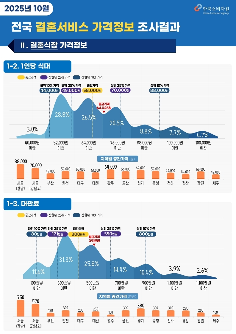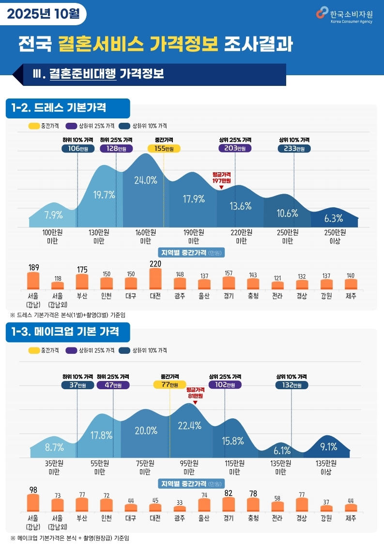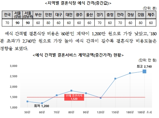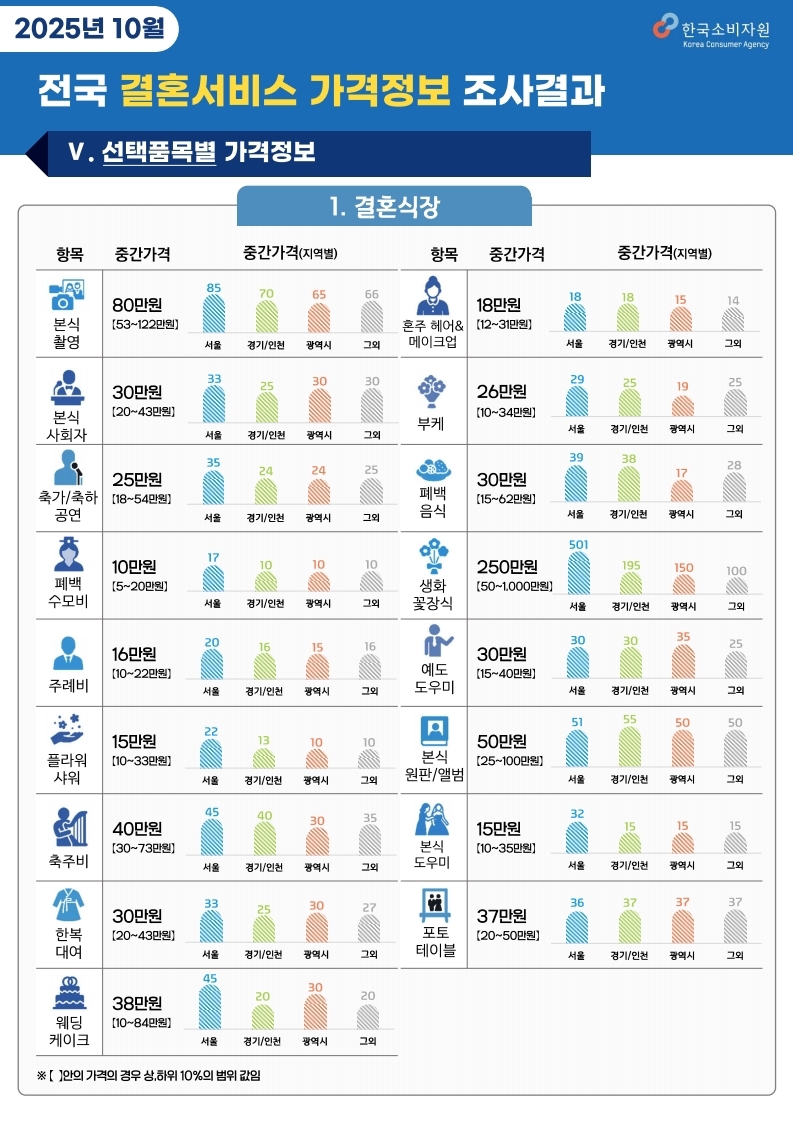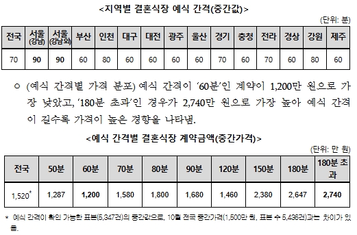 * 결혼식장(토요일 11시∼13시 시작 예식 기준) 계약금액 및 결혼준비대행 스드메 패키지 계약금액(단, 제주도는 지역 특성으로 인해 스드메 패키지 계약 건이 없어 드메 패키지 계약금액을 적용함.)