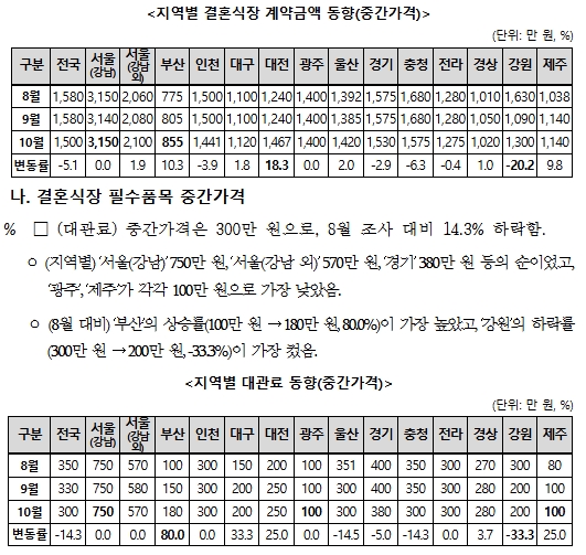 □ 결혼서비스 전체비용 8월 조사 대비 3.4% 하락(세부내용, 5p)