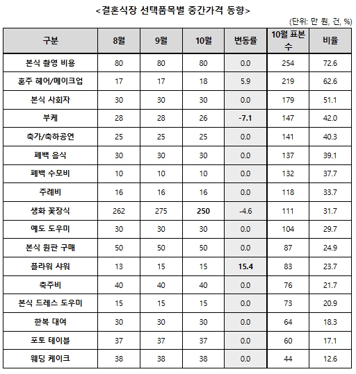 결혼서비스 가격 추이(4월 ∼ 10월)