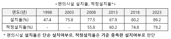 ○ 매년 편의시설 설치 실태조사 실시, 5년마다 전수조사 실시