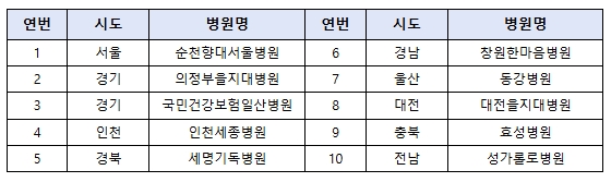 - 응급 뇌졸중 환자 관내 이용률(%) : 전남 50.3, 서울 90.4, 세종 61.2