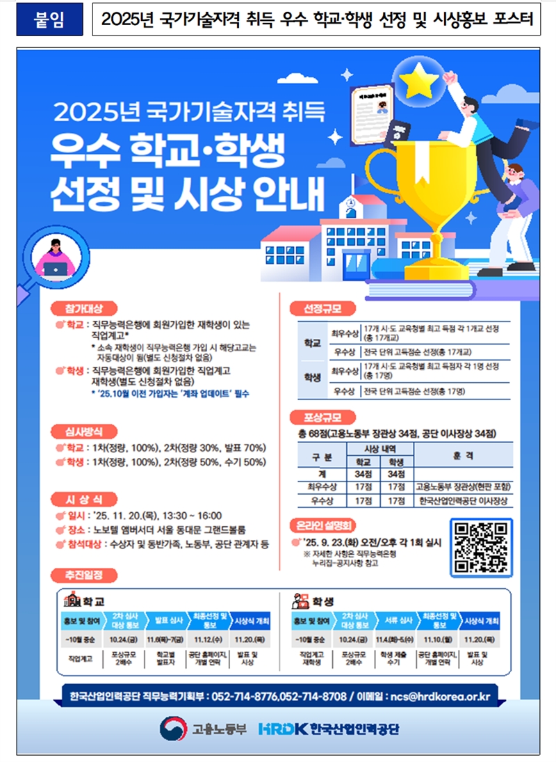 2025년 국가기술자격 우수 학교·학생 선정 및 시상 추진