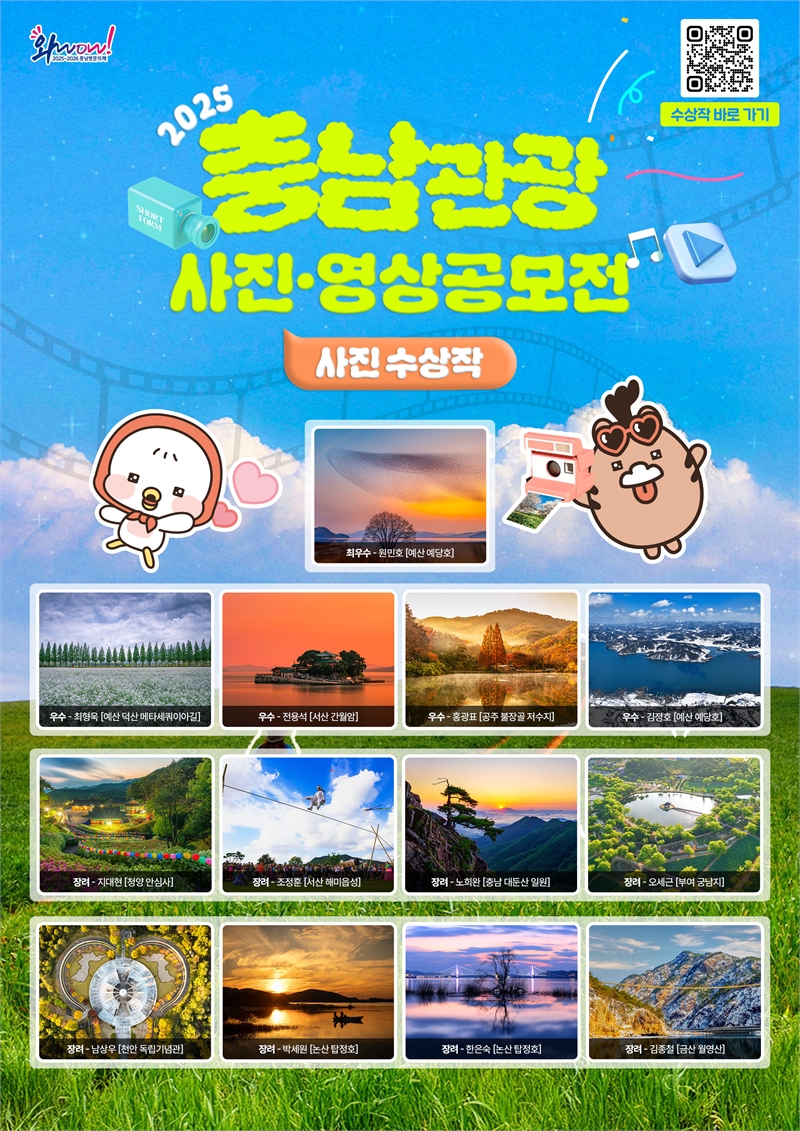 충남도는 충남 방문의 해를 맞아 도내 관광자원의 매력을 널리 알리기 위해 22일부터 내년 1월 11일까지 ‘2025년 충남관광 콘텐츠 공모전’ 수상작을 한자리에 모아 충남도서관 기획전시실에서 특별 전시회를 진행한다. 이번 공모전은 사진과 영상 부문을 합해 총 625건의 작품이 접수되는 등 높은 관심을 모았다. 사진
