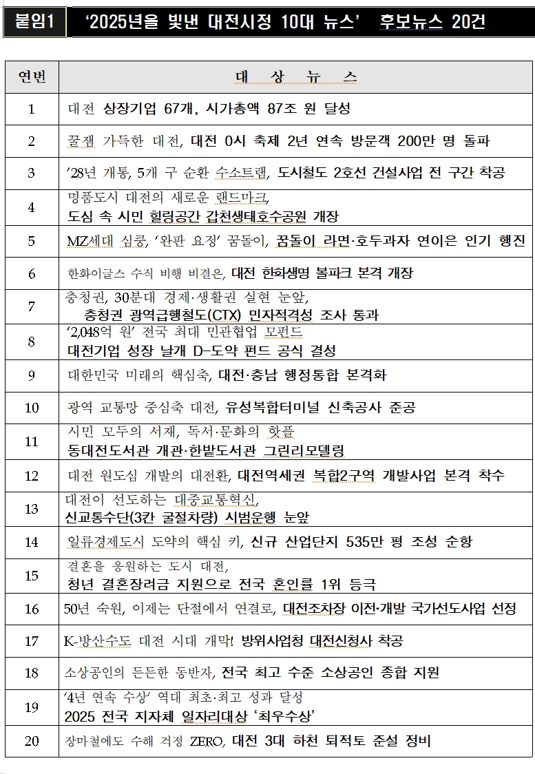 “2025년 대전의 대표 뉴스를 뽑아주세요”