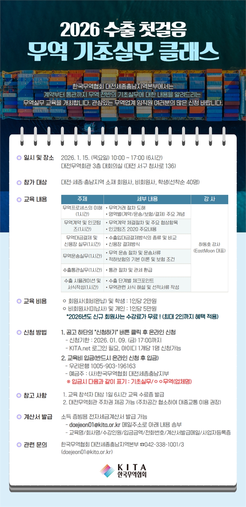 [한국무역협회] 2026 무역 기초실무 원스톱 클래스 교육 신청안내(1/15)