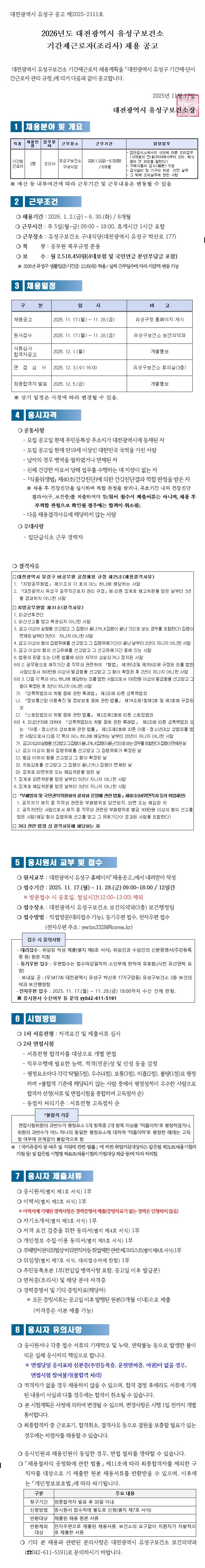 2026년도 대전광역시 유성구보건소 기간제근로자(조리사) 채용 공고
