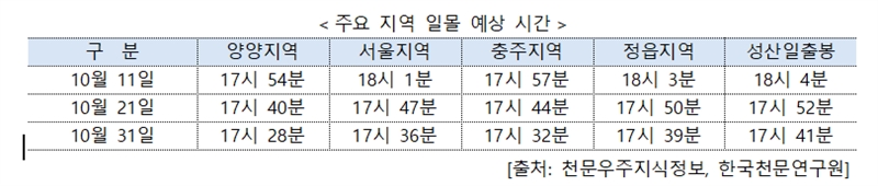 ○ 단풍은 10월 초 설악산을 시작으로, 10월 중순 이후에는 전국 대부분 지역에서 단풍을 즐길 수 있을 것으로 예상된다.