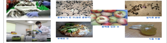 → 대상 : 잔류농약, 방사능, 미생물(대장균, 식중독균 등), 보존료, 중금속, 허용 외 첨가물 등